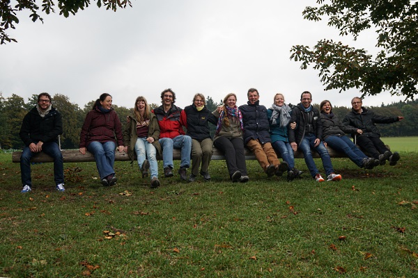 | Die Wippe vor der Gaststätte eignet sich wunderbar für das Gruppenbild (und Sabine ist nach ihrem Abstecher auch wieder dabei). |