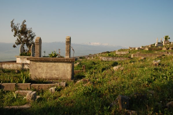 Moslemischer Friedhof mit dem schneebedeckten Antilibanon