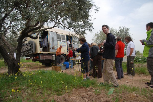Rast in einem Olivenhain an der Strasse nach Idlib