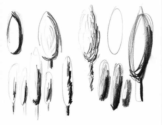 Die Skizzen zur "Studie in Grau"Die Skizzen zur "Studie in Grau" beschäftigen sich inhaltlich mit der äußeren Form und verschiedenen Darstellungstechniken von Baum und Schatten. Immer wieder wird das Motiv reduziert, um mit minimalem Aufwand die wesentlichen Bestandteile darzustellen.