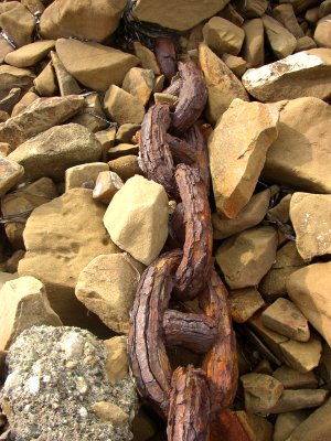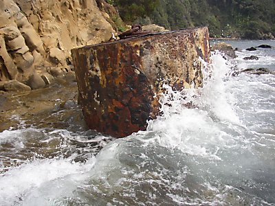 Resten der Seilbahn sind am Strand auch noch Eisenketten vorhanden, die seit