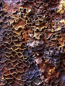 Anschließend zeigte mir Karlheinz dann die alte Boje, die er vor einiger Zeit bei Portiglioni am Strand entdeck hat. Früher war dort im Meer einmal ein Verladesteg für das Pyrit, das in der Maremma abgebaut wurde. Und die Boje ist eines der Überbleibsel dieser Zeit, die nun im Salzwasser vor sich hin rostet. So hoch wie bei meinem Besuch steht das Wasser selten, und so wurde die Fotosession ein relativ nasses Vergnügen - aber die Farben und Muster aus Eisen, Salz und Wasser entschädigen für die Mühe. |