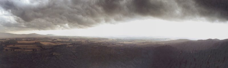 | Auch der Ausflug nach Montemassi ging nicht ohne Regen ab - ein ungeheures Gewitter zog über das Dorf. | ||||