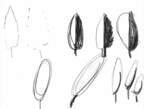 Die Skizzen zur "Studie in Grau"Die Skizzen zur "Studie in Grau" beschäftigen sich inhaltlich mit der äußeren Form und verschiedenen Darstellungstechniken von Baum und Schatten. Immer wieder wird das Motiv reduziert, um mit minimalem Aufwand die wesentlichen Bestandteile darzustellen.
