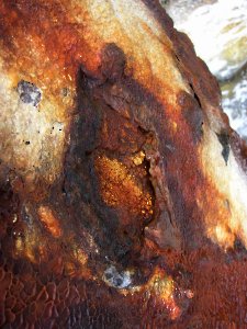 Anschließend zeigte mir Karlheinz dann die alte Boje, die er vor einiger Zeit bei Portiglioni am Strand entdeck hat. Früher war dort im Meer einmal ein Verladesteg für das Pyrit, das in der Maremma abgebaut wurde. Und die Boje ist eines der Überbleibsel dieser Zeit, die nun im Salzwasser vor sich hin rostet. So hoch wie bei meinem Besuch steht das Wasser selten, und so wurde die Fotosession ein relativ nasses Vergnügen - aber die Farben und Muster aus Eisen, Salz und Wasser entschädigen für die Mühe. |